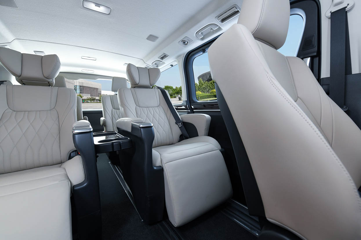 As buzzers can often be missed, it also causes the steering wheel to vibrate as well, ensuring the driver responds in time to prevent a potential accident. The Granvia also has airbags all around, as well as Dynamic Radar Cruise Control, Panoramic View Monitor, Digital Rear-view Mirrors, and Rear Cross Traffic Alert to prevent the driver from backing out into traffic.