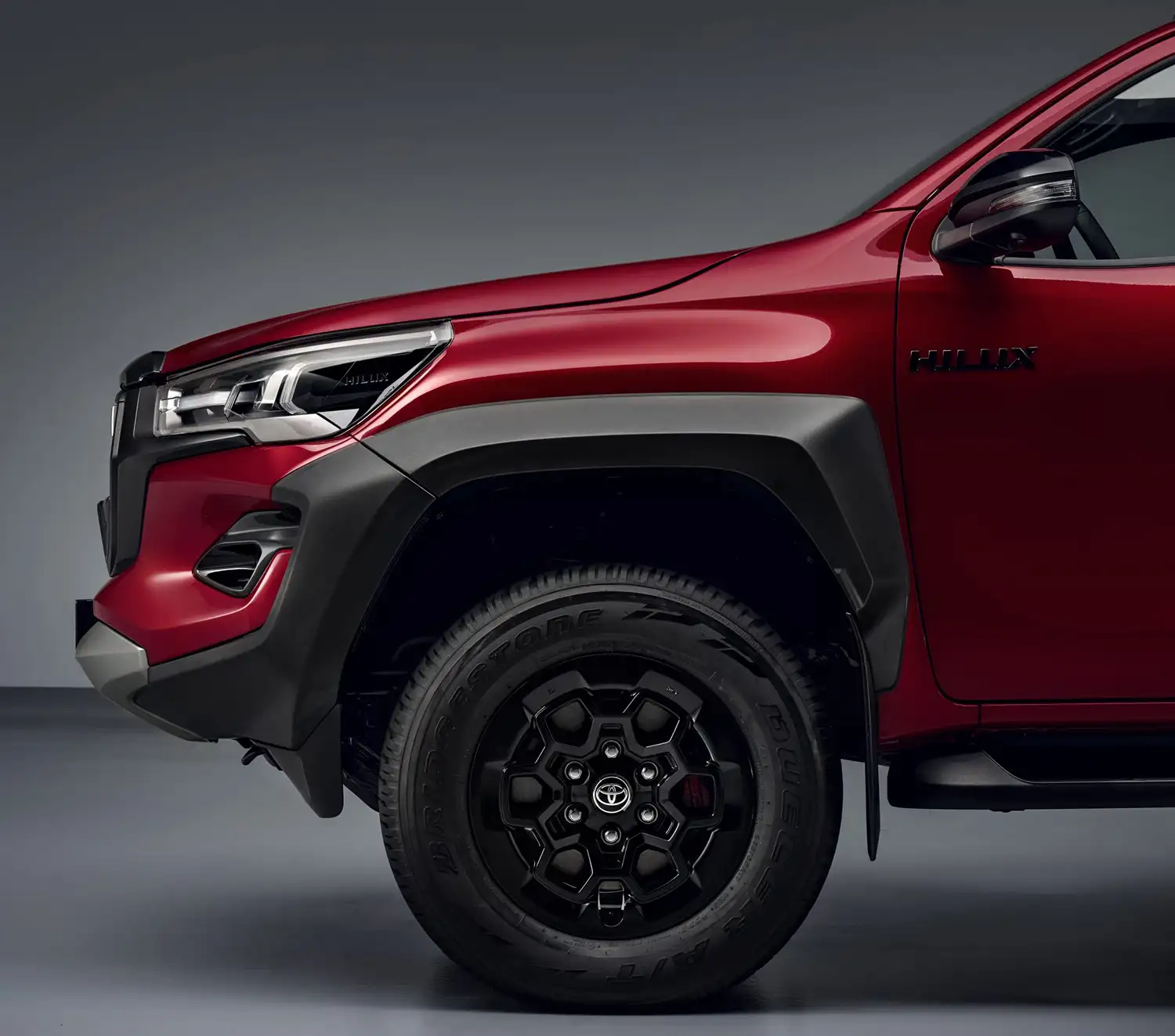 The Hilux GR Sport II is a double cab model that allies best-in-class towing (3,500kg) and payload (1,000kg) with an even more assertive evolution of the current model’s styling. It stands out from the crowd, wherever the spirit of adventure takes it. The vehicle’s track – the distance between the left and right-side wheels – has been increased by 140mm at the front and 155mm at the rear compared to the standard Hilux. This creates a confidence-inspiring ride whatever the weather or road conditions.
