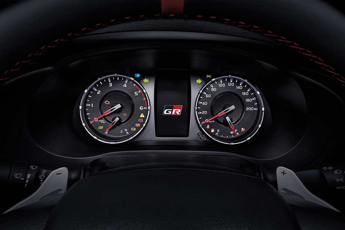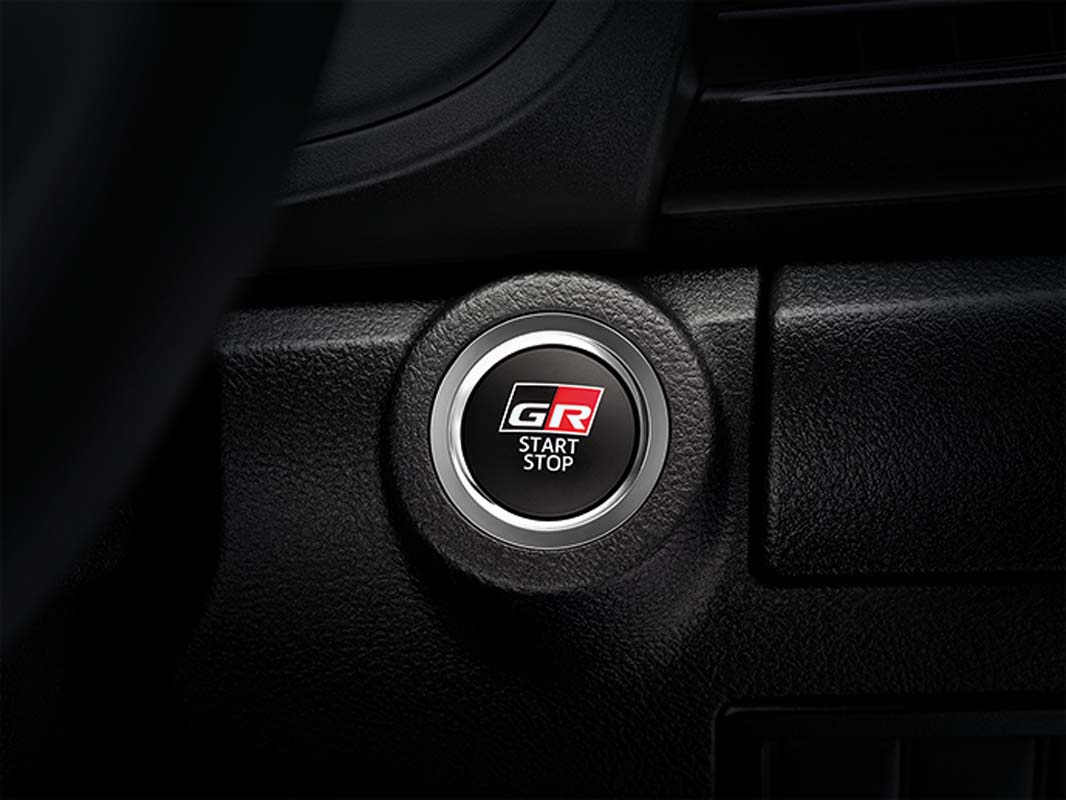 – Sporty-style steering wheel and dashboard, with smart ignition system ‘Push start’ and the GR emblem display.
