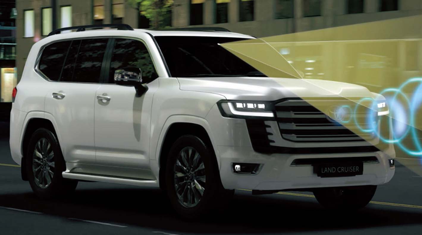 There are significant advances in safety, from the inherent robustness of the vehicle’s construction and its sophisticated systems for secure driving in challenging conditions, to additional and upgraded active safety and driver assistance systems provided by second generation Toyota Safety Sense. The ability of the Pre-Collision System to help avoid an accident has been increased so it is now able to detect pedestrians (day and night-time) and bicycle riders (daytime) in the car’s path. When turning at junctions, PCS can also recognise potential collision hazards with both oncoming traffic and pedestrians crossing the road into which the vehicle is heading. The new Toyota Land Cruiser 300 adopts a new Parking Support Brake, which recognises obstacles in front and behind the car when moving slowly in a car park and approaching vehicles and pedestrians when reversing out of a parking space.