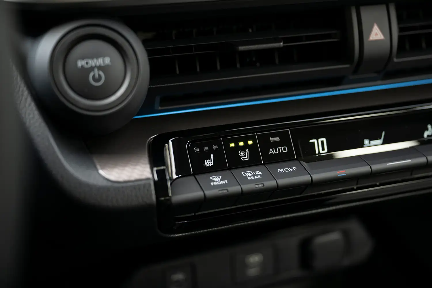 The interior features a clean, modern design that minimizes eye and body movement. A multi-information display is mounted directly in front of the driver to help keep eyes on the road and a standard 8-inch or available 12.3-inch multimedia touchscreen is mounted within easy reach. Drivers and passengers alike will enjoy the comfort offered by Prius’ seating construction. Designers have maximized the area that comes in contact with the body on the seat bottom, creating a shape that disperses weight across the seats to reduce sitting pressure. For added comfort, the XLE grade includes standard heated seats, and the Limited grade adds standard heated and cooled seats, with optional heated rear seats.
