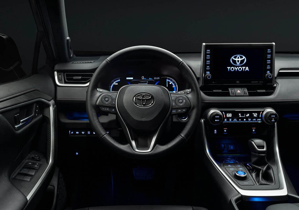 Inside, XSE steps up the sport, luxury and tech with RAV4’s first-ever paddle shifters, along with moonroof, unique SofTex synthetic leather seat surfaces, wireless smartphone charging, ambient lighting, auto-dimming rearview mirror with integrated garage door opener and the largest multimedia screen in any RAV4 ever. The standard Audio Plus system comes with a 9-in. touch-screen and there is an available Premium Audio that includes Dynamic Navigation and JBL speaker system.