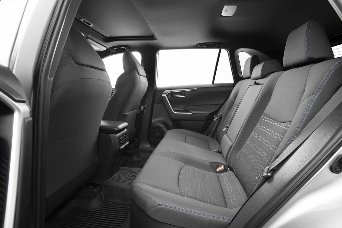 Designed for customers looking for sporty performance and sporty style but at a lower price compared to the XSE, the new SE Hybrid grade for RAV4 includes mono-tone paint, fabric trimmed seats and a 7-inch touchscreen with six speakers. And the SE Hybrid grade’s available options are exceptional, as well as smartly packaged. The weather package is a commuter’s dream, offering a heated leather steering wheel, heated front seats and rain-sensing windshield wipers with a de-icer function. The convenience package includes a moonroof, adjustable power liftgate and not to mention, Audio Plus that upgrades to a 9-inch touchscreen.