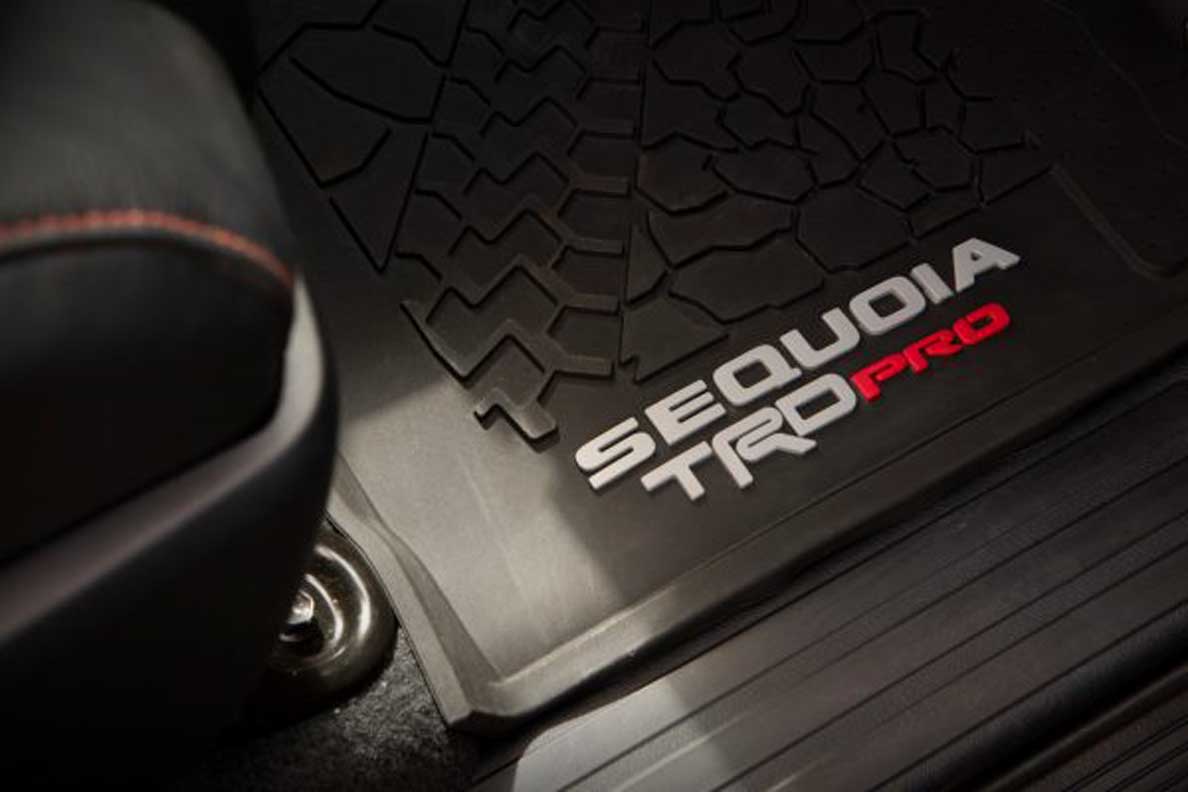 Sequoia TRD Pro will also be available with a TRD cat-back exhaust. The single-outlet exhaust features a black chrome tip and TRD debossed logo, offering a bolder exhaust note that TRD engineers designed with a frequency-tuned sound cancellation device to improve in-cabin sound quality.