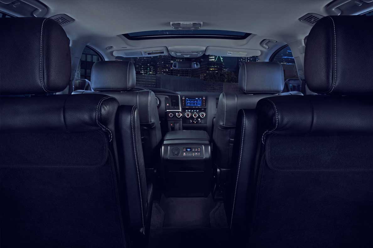 The 2020 Sequoia TRD Pro is available exclusively as a 7-seat model, featuring middle-row captain’s chairs and a three-across third-row seat with 60/40 split backs that also recline. And there’s plenty of room for all. Second-row legroom stretches 40.9 inches, while the third row offers adult-size 35.3 in. legroom.