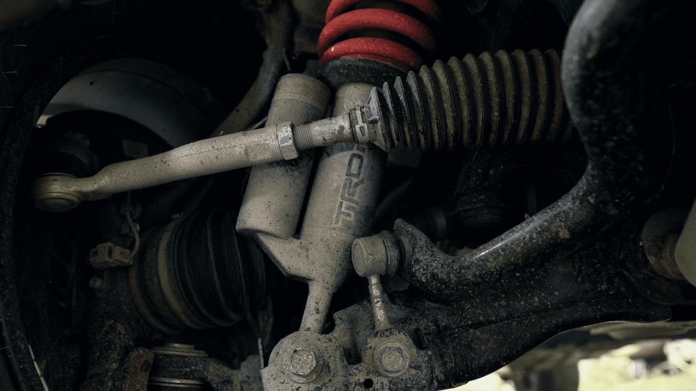 For the rear suspension, Sequoia TRD Pro employs 2-inch-diameter Fox piggyback monotube shocks that feature bottom-out-control technology, which is designed to increase damping force for improved bottoming resistance in unforgiving terrain. Compared to the standard rear Sequoia shocks, the 2-inch Fox units feature larger 47mm pistons (15mm larger than original equipment) and beefier shock rods that are 3.2 mm larger in diameter.