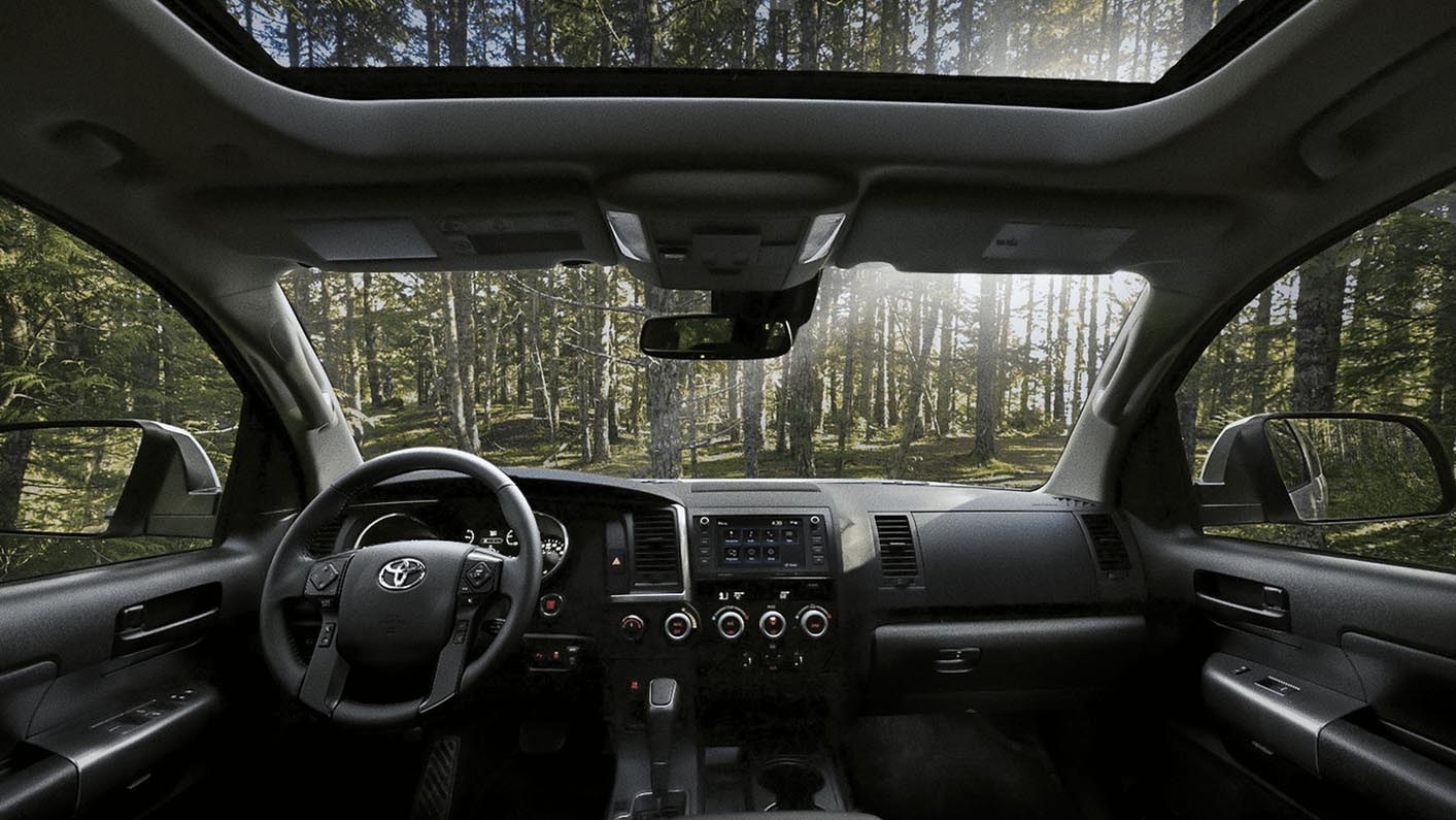 Sequoia TRD Pro’s long roster of standard amenities include Smart Key with Push Button Start; 8-way power driver’s seat; power tilt/slide moonroof, and tri-zone automatic climate control with separate rear-seat controls. There’s no shortage of onboard music sources with the standard Premium Audio, which uses a high-resolution touchscreen display and includes Android Auto, Apple CarPlay, Amazon Alexa compatibility, AM/FM/HD Radio, SiriusXM® Satellite Radio, USB media port, plus Bluetooth hands-free phone capability and music streaming.
