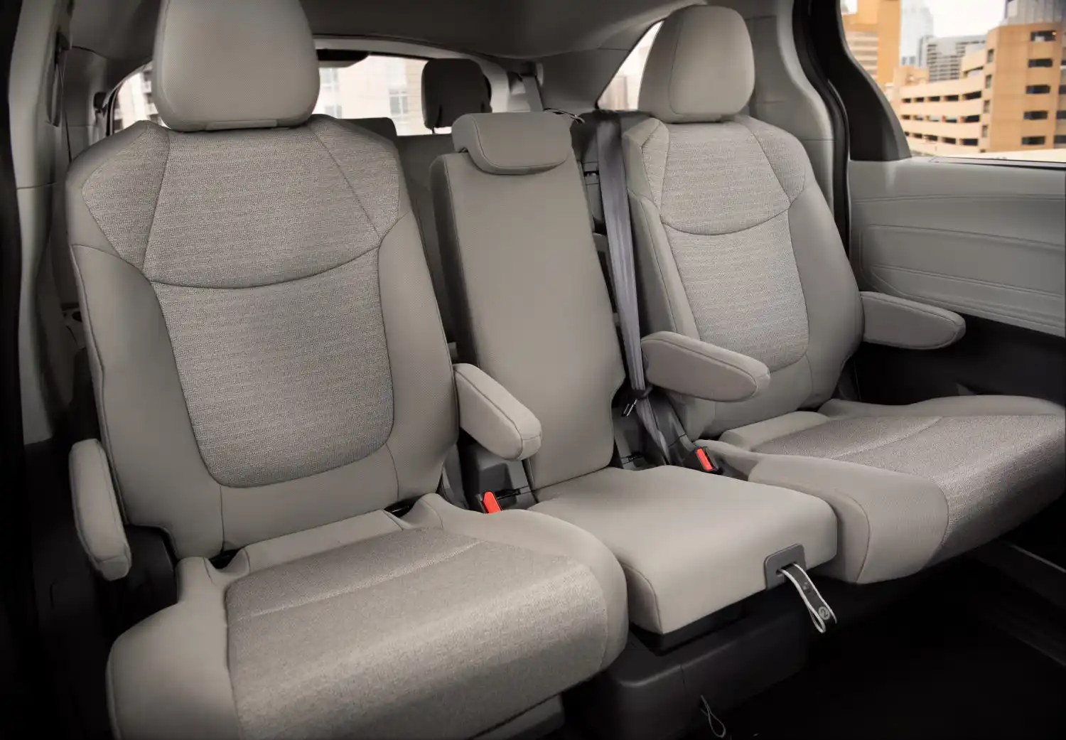 The 2024 Sienna Woodland Edition comes exclusively in the 7-seat configuration with Super-Long-Slide second-row captain’s chairs. The Split & Stow 3rd Row® Seat and kick-activated power sliding rear doors make it easy to load and carry recreational gear. Heated front seats, sunshades in the second row and a total of seven USB ports across all three rows ensure comfort and convenience for all aboard. (Other Sienna grades share these features as standard or optional.)