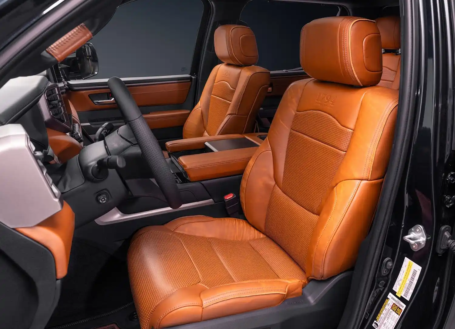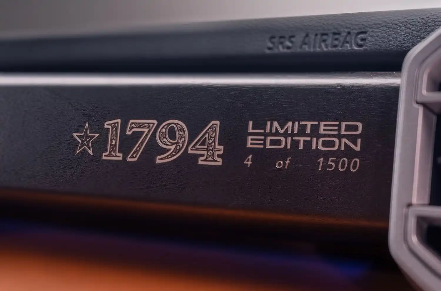 There are unique exterior design changes as well that pull the whole package together. A dark chrome grille and body side moldings, blacked-out accents, unique stamped tailgate, and, inside, an embossed label that marks the truck as one of 1,500.