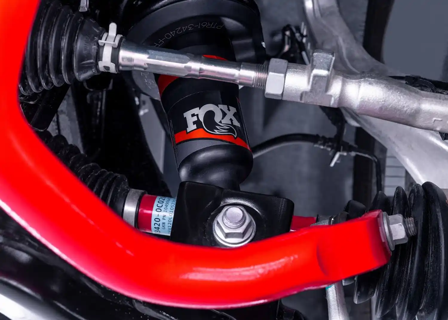 The engineers did not just focus on a beautiful interior though. They also added upgraded FOX suspension and an off-road inspired wheel and tire combination. The 2.5-in.-diameter FOX® Internal Bypass shocks with piggyback reservoirs and a 1.1-inch lift improves the stance of the truck and adds to the trucks off-road capability.