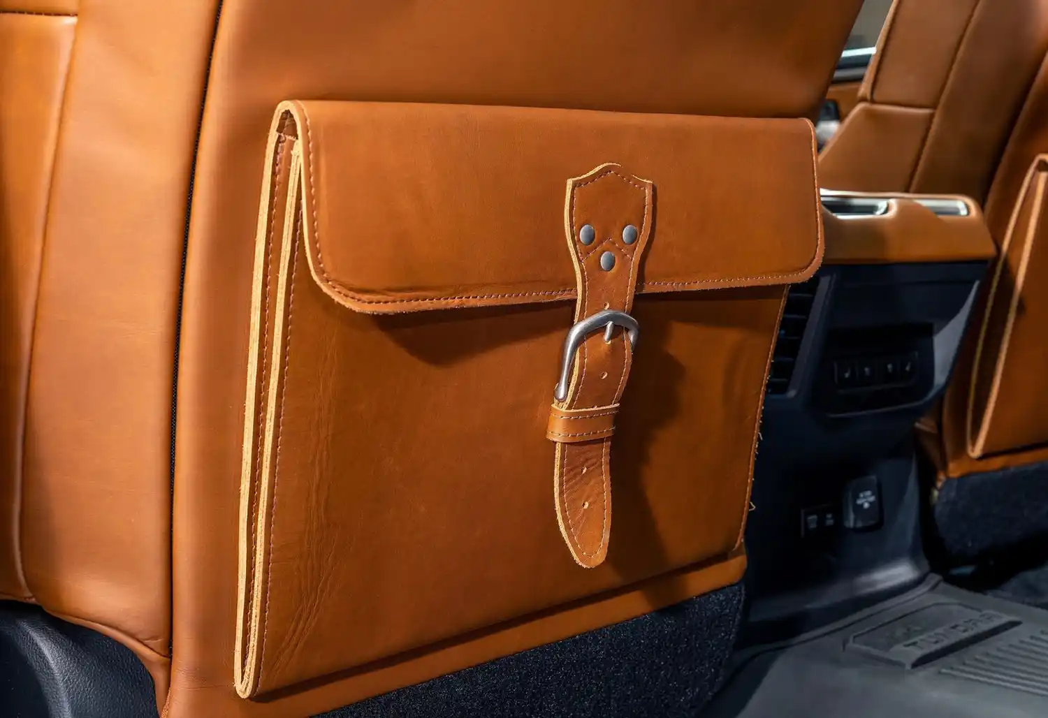 An exciting part of this 1794 Limited Edition is the addition of several Saddleback Leather Company accessories that match the truck. These include a large overnight bag, tool roll, owners’ portfolio, key glove, and a small pouch.