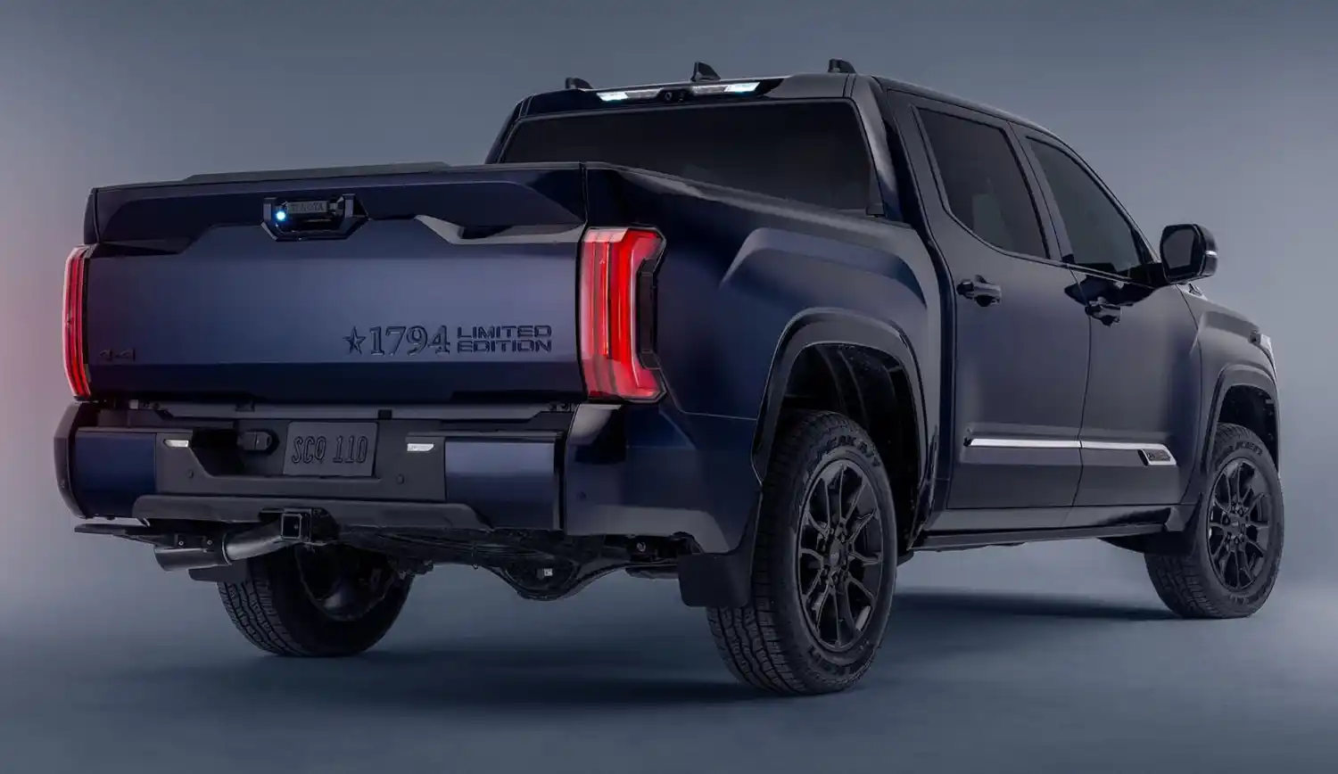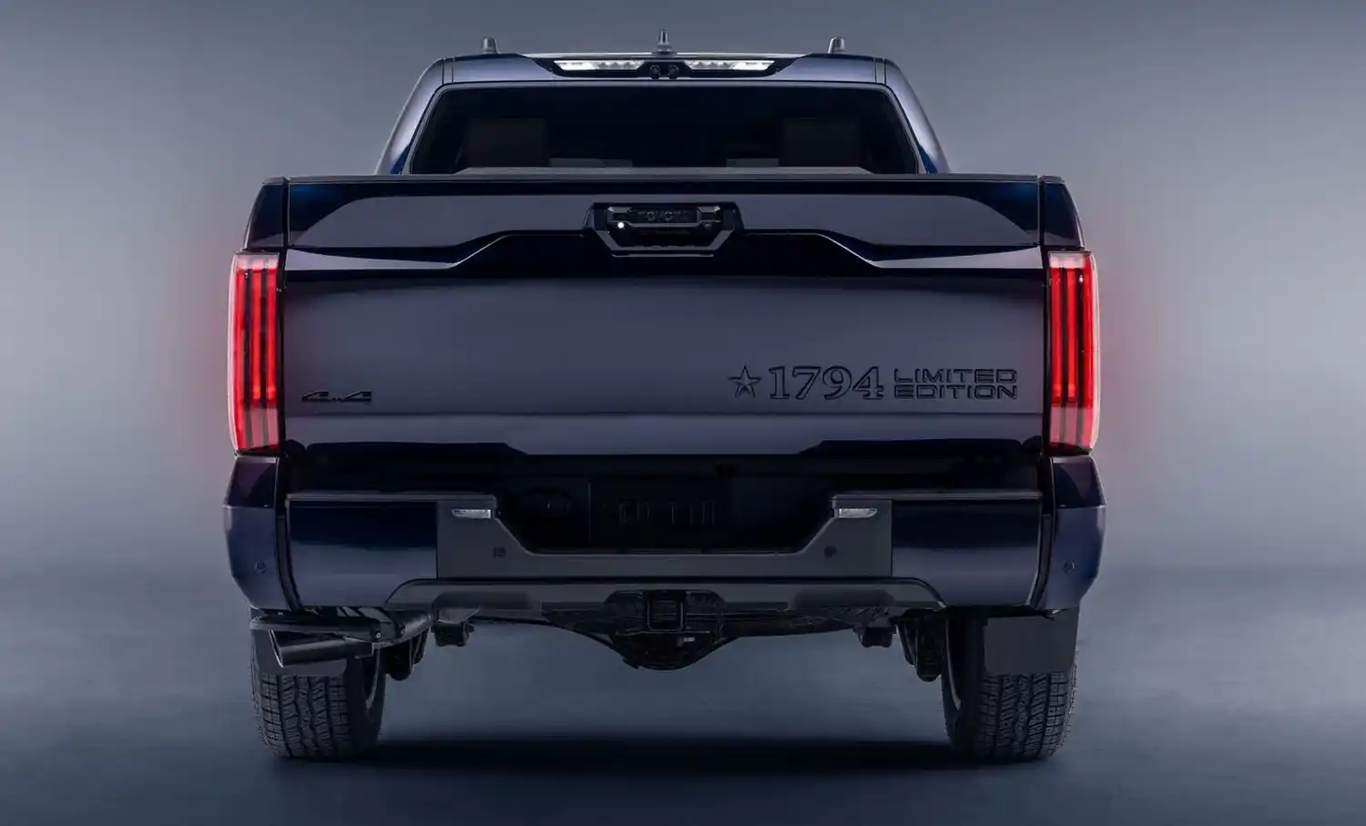 The Toyota Tundra 1794 Limited Edition will be available in dealerships spring of 2024. It is available in colors Wind Chill Pearl, Midnight Black Metallic, Blueprint and Smoked Mesquite.