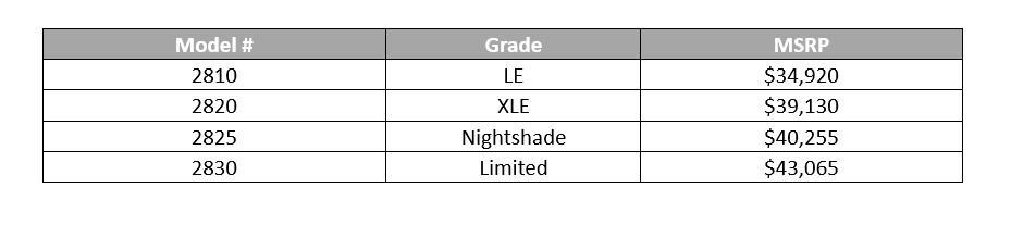 2024 Venza Manufacturer’s Suggested Retail Price (MSRP)**