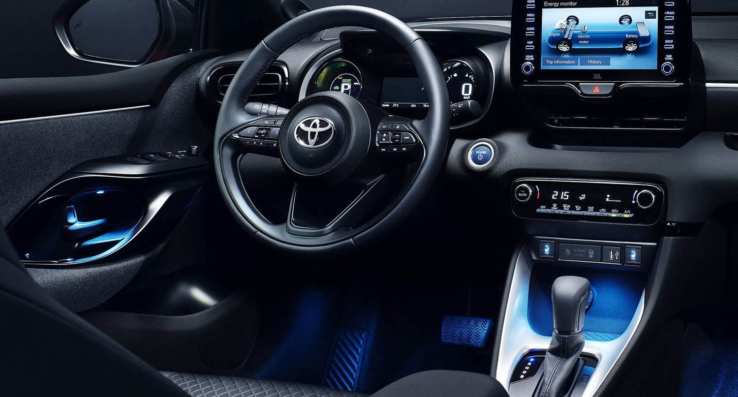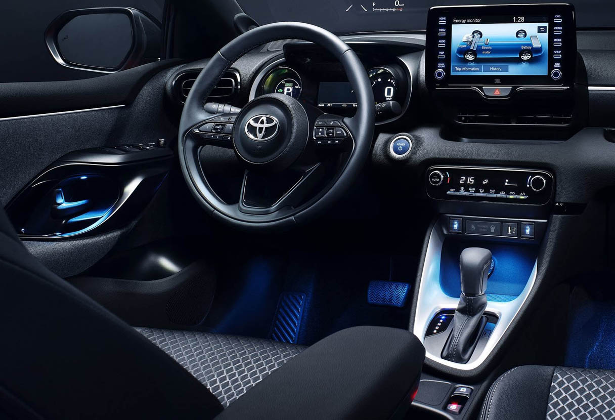 Examples of the premium quality features that can be specified for the new Yaris include an eight-speaker JBL premium audio system, a heated steering wheel and ambient blue cabin lighting in the footwells, door panels and centre console. A full LED lighting pack is also available, including fog lights.