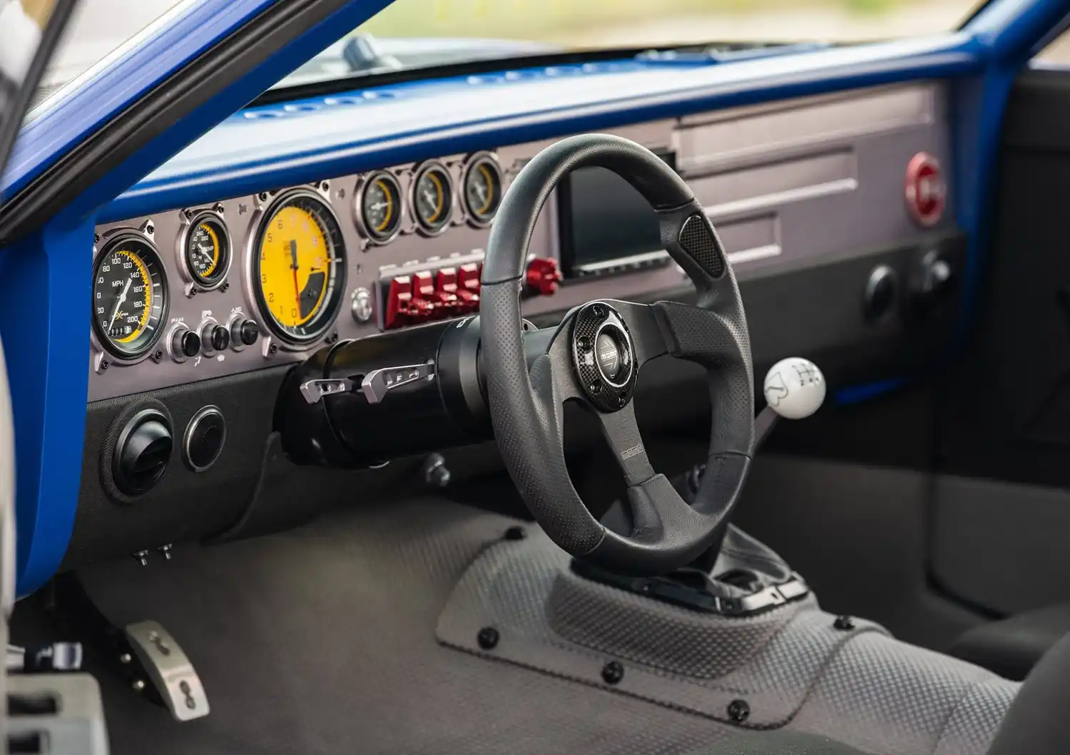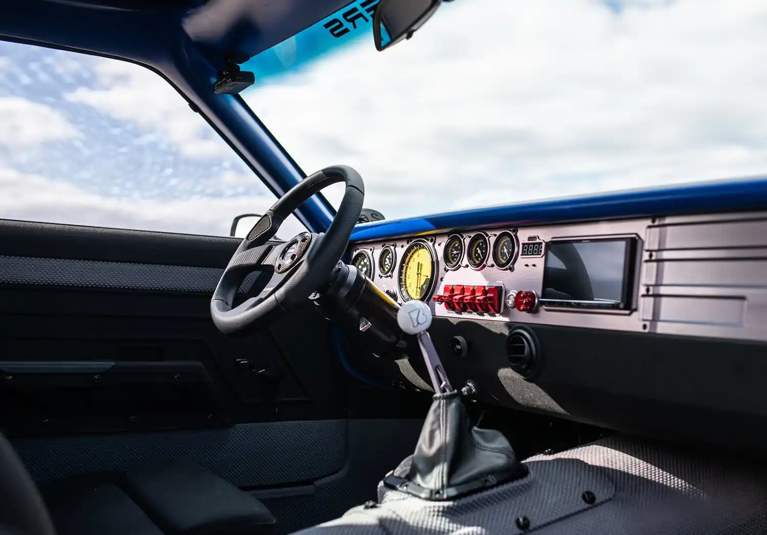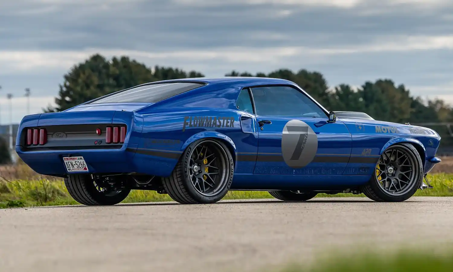 One of the standout features of UNKL is its homage to racing history. The car’s headliner features an outline of Elkhart Lake, also known as Road America, highlighting the personal connection the owner and Ringbrothers have with this iconic track. The car’s livery includes logos from sponsors who contributed to the build, such as Michelin, HRE Wheels, BASF, Motul, and Flowmaster.