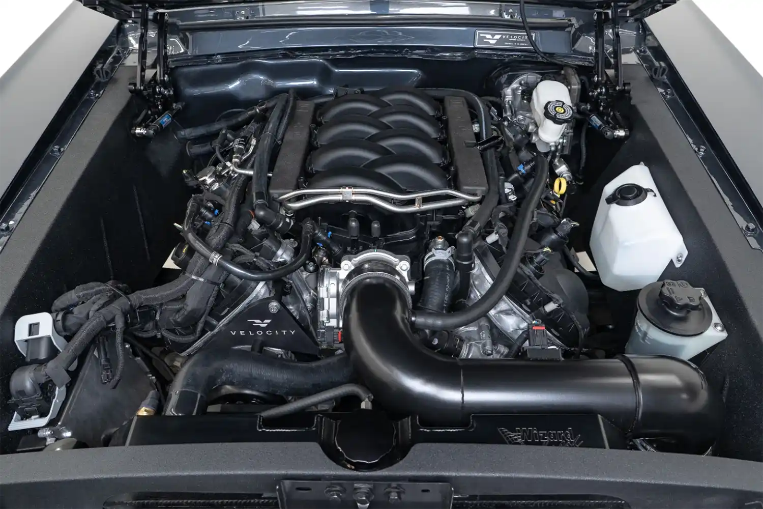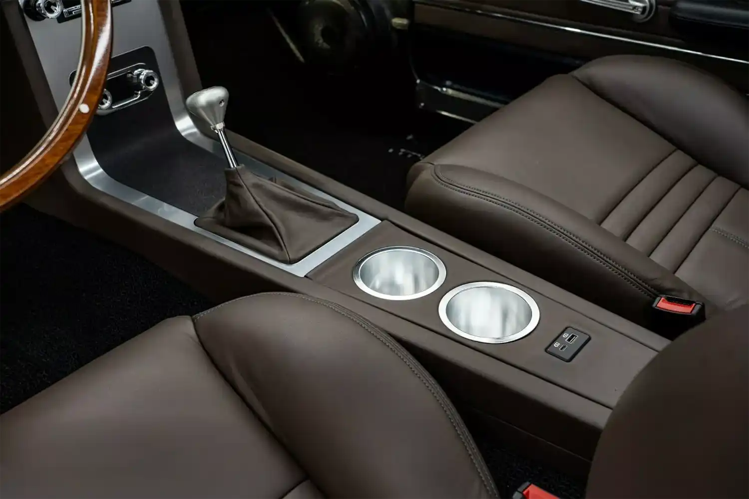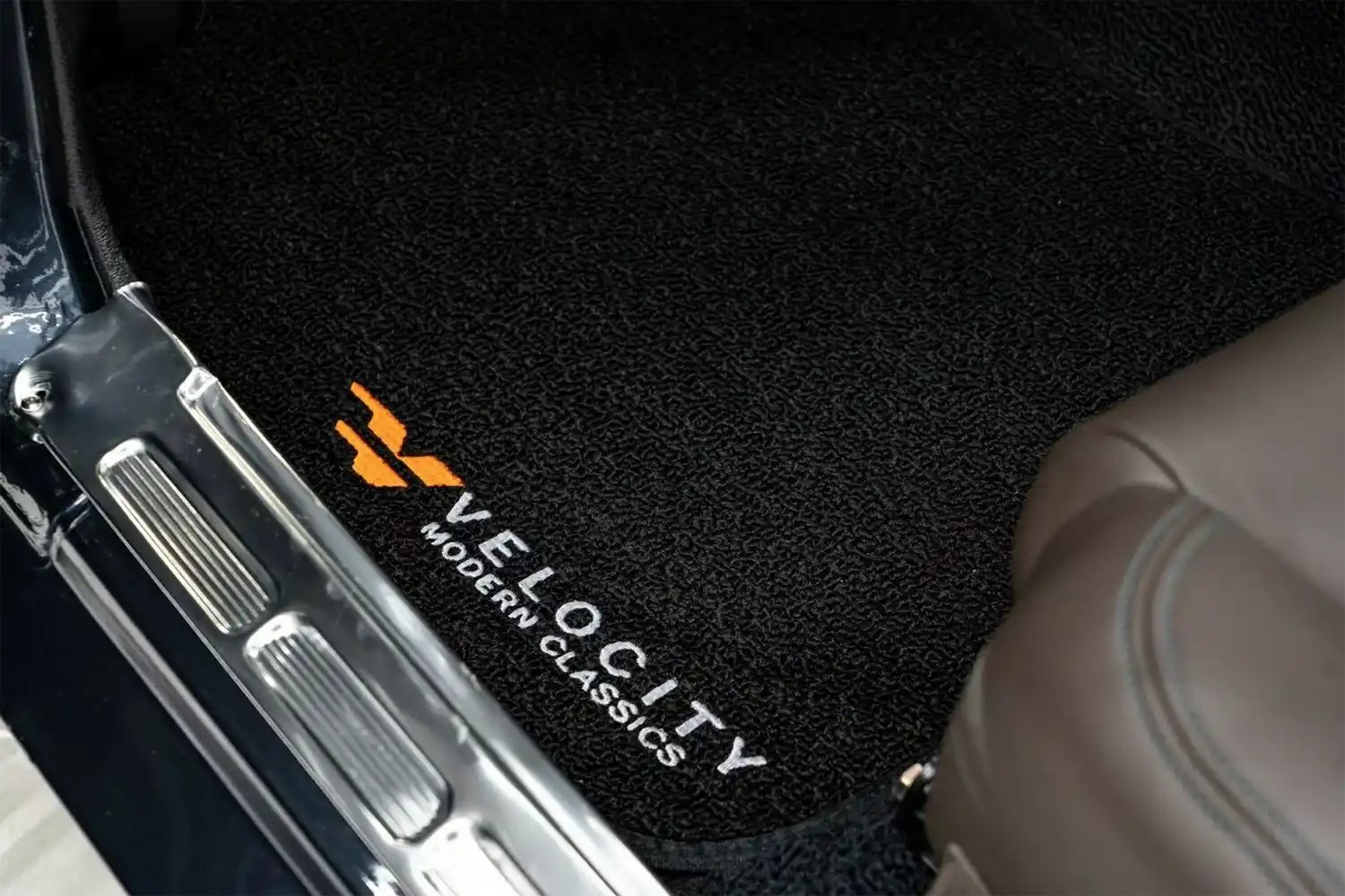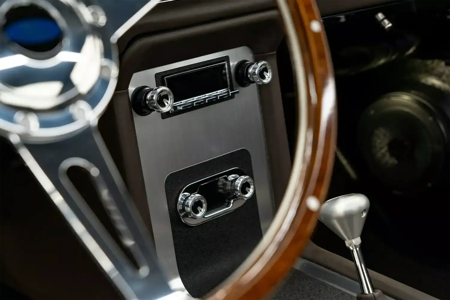 Inside the Fastback, Velocity’s in-house design team has crafted a luxurious cockpit filled with both nostalgia and modern comforts. Climate control comes courtesy of the Vintage Air air-conditioning system. A RetroSound head unit cranks tunes through four Focal speakers and a subwoofer for immersive audio.