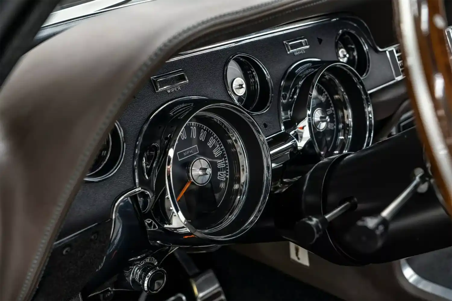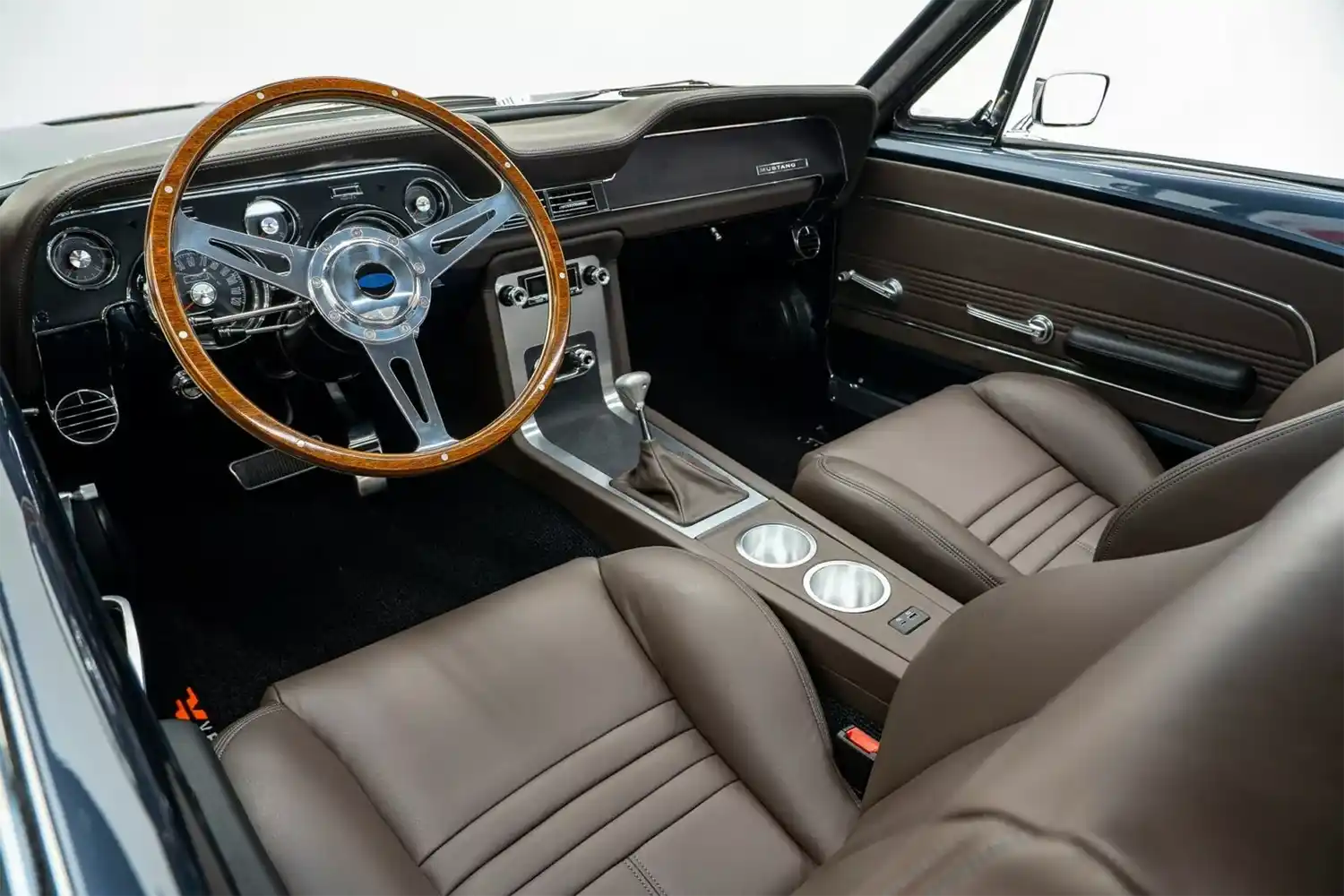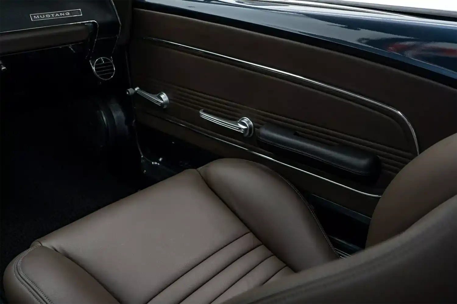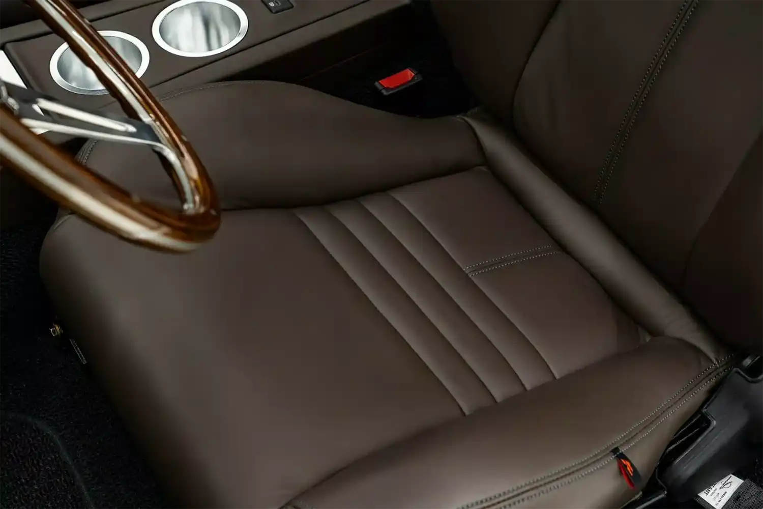 Inside the Fastback, Velocity’s in-house design team has crafted a luxurious cockpit filled with both nostalgia and modern comforts. Climate control comes courtesy of the Vintage Air air-conditioning system. A RetroSound head unit cranks tunes through four Focal speakers and a subwoofer for immersive audio.
