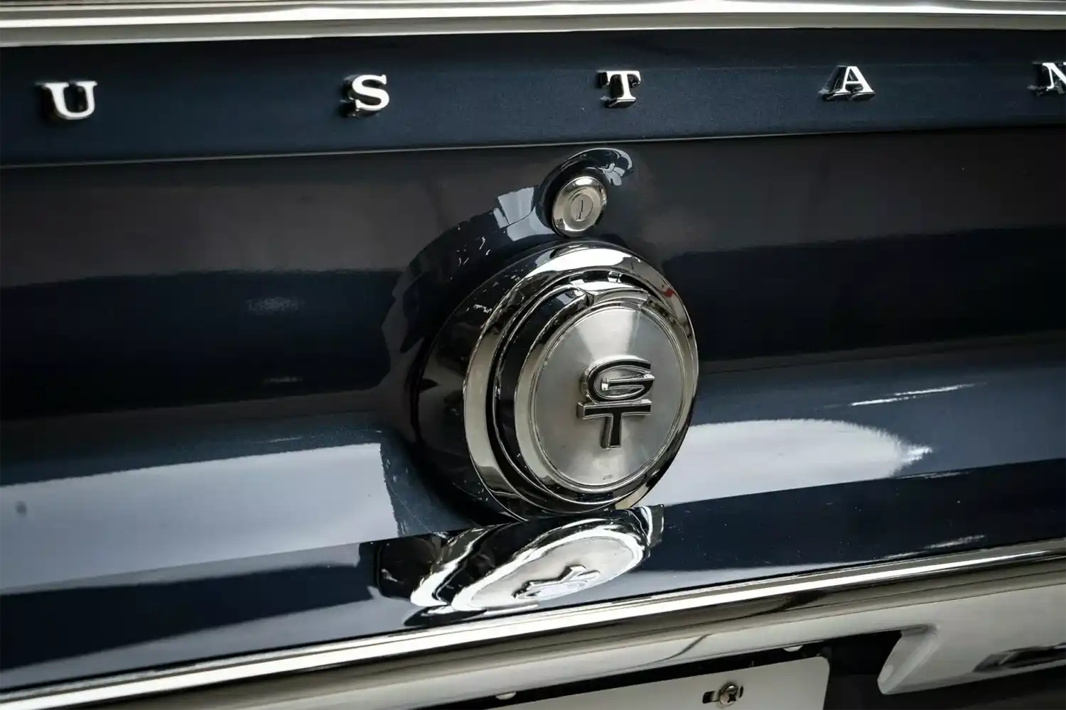 The exterior of the Velocity Signature Series Mustang Fastback is clad in custom BASF Glasurit paint colors and is available with optional painted racing stripes for a more pronounced look. A vented hood with marker lights helps to keep engine temps down and adds a race-ready look. Chrome accessories, a color-matched painted firewall and chrome bumpers elevate and accentuate the classic look of the Mustang. Truck-Lite LED headlights illuminate the street at night, and sequential LED taillights bring a touch of modernity to the pony’s rear.