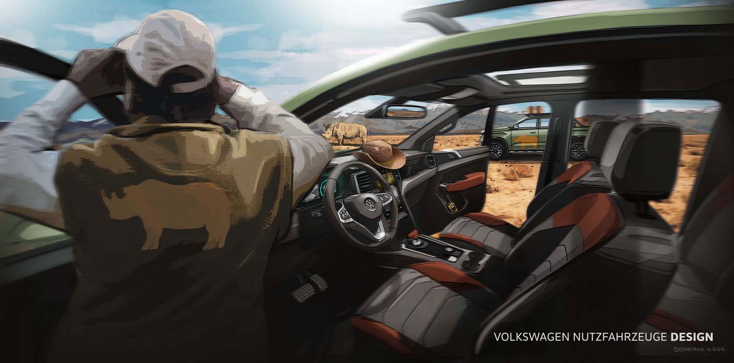 The Amarok is arriving here in a completely new design. On the outside, for example, it will be ten centimetres longer and over four centimetres wider than the current version. The versatile on-road and off-road vehicle is, however, being clearly upgraded inside as well, as the latest sketch indicates.