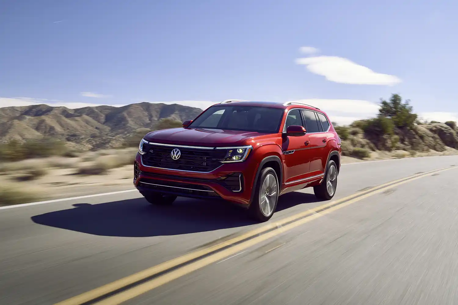 For 2024, the Atlas family will be powered solely by a four-cylinder turbocharged and direct-injection TSI® engine with 269 horsepower and 273 lb-ft of torque. The new engine provides similar power to the outgoing VR6, a bump in torque-which is available over a broader rev range, improving drivability and acceleration-and is anticipated to provide improved fuel economy. Towing capacity remains the same, at 5,000 pounds. An eight-speed automatic transmission and front-wheel drive are standard; Volkswagen’s 4Motion all-wheel-drive system is available across the model lineup.