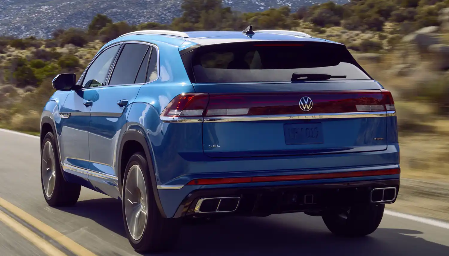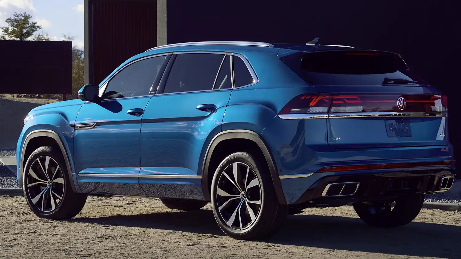 At the rear, both models add a larger spoiler, lengthening the overall roofline of the vehicles and giving them a sleeker side profile. All but base trims mirror the front lighting signature in the rear with an illuminated lightbar and VW logo sitting between the LED taillights. Volkswagen Atlas Cross Sport models add a more aggressive rear diffuser than the previous generation, further differentiating the two models.