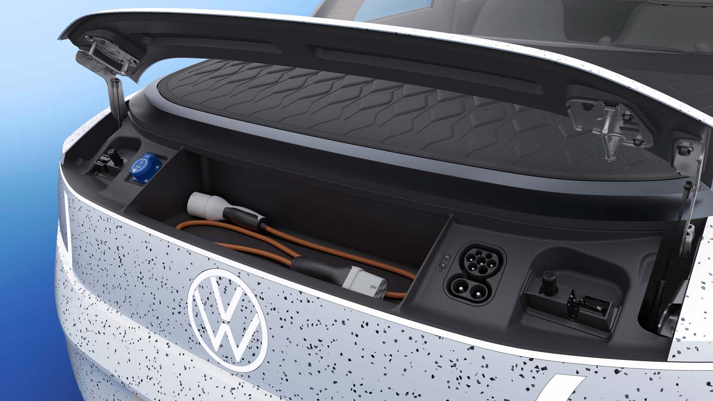 Multifunctional interior. The ID. LIFE is a reliable companion for digital experiences of various kinds. For example, it can be converted into a cinema or gaming lounge in no time at all. The vehicle comes with a video game console and projector, as well as a projection screen that extends from the dash panel when required. Other devices can be connected as needed to the 230-volt / 16-amp power supply in the interior. The seating design, too, is extremely flexible, in keeping with the idea of the car as a companion for all situations and lifestyles. For instance, the front seat bench can be completely folded down, as can the rear seat bench. This enables a range of different possibilities, from cinema seating, to a bed measuring around two metres in length, to a cargo version that maximises luggage volume.