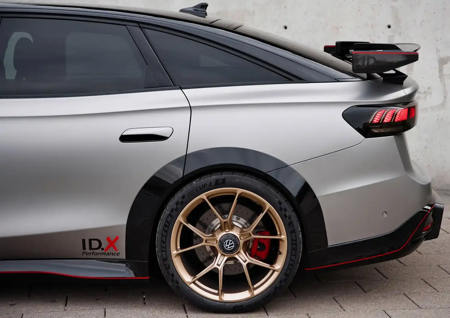 The ID.X Performance demonstrates its unique athleticism through its dynamic appearance. The exterior of the all-electric limousine has a host of sporty features – both the front splitter and rear diffuser are made of carbon. The engineers have increased the toe by 80 millimetres and lowered the sports suspension with especially stiff springs by 60 millimetres. Alongside the drive unit, this makes a significant contribution to performance, making the vehicle handling even more agile.