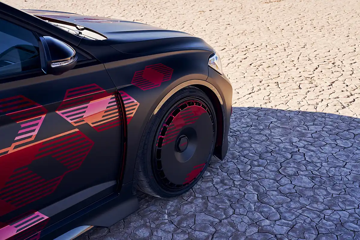 Built on a 2022 Jetta GLI Autobahn with six-speed manual, the GLI Performance concept features front and rear fenders that are 0.8 inches wider than stock, all with backside vents. The motorsport-inspired flares are tied together at the profile through larger profile side skirts. A custom front bumper boasts upsized grille intakes, while the rear bodywork sports updated grille inserts and a muscular lower valance that frames the car’s twin-exit sport muffler. A custom hexagon-themed matte black vinyl wrap transitions to the car’s factory shade of Kings Red Metallic paint.