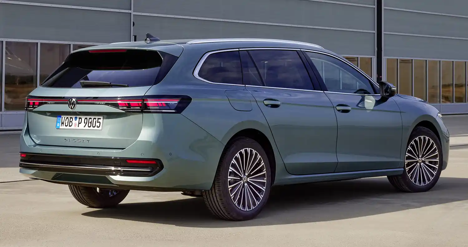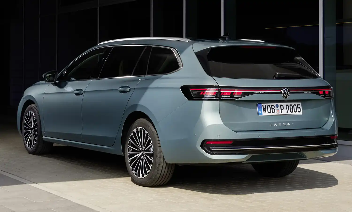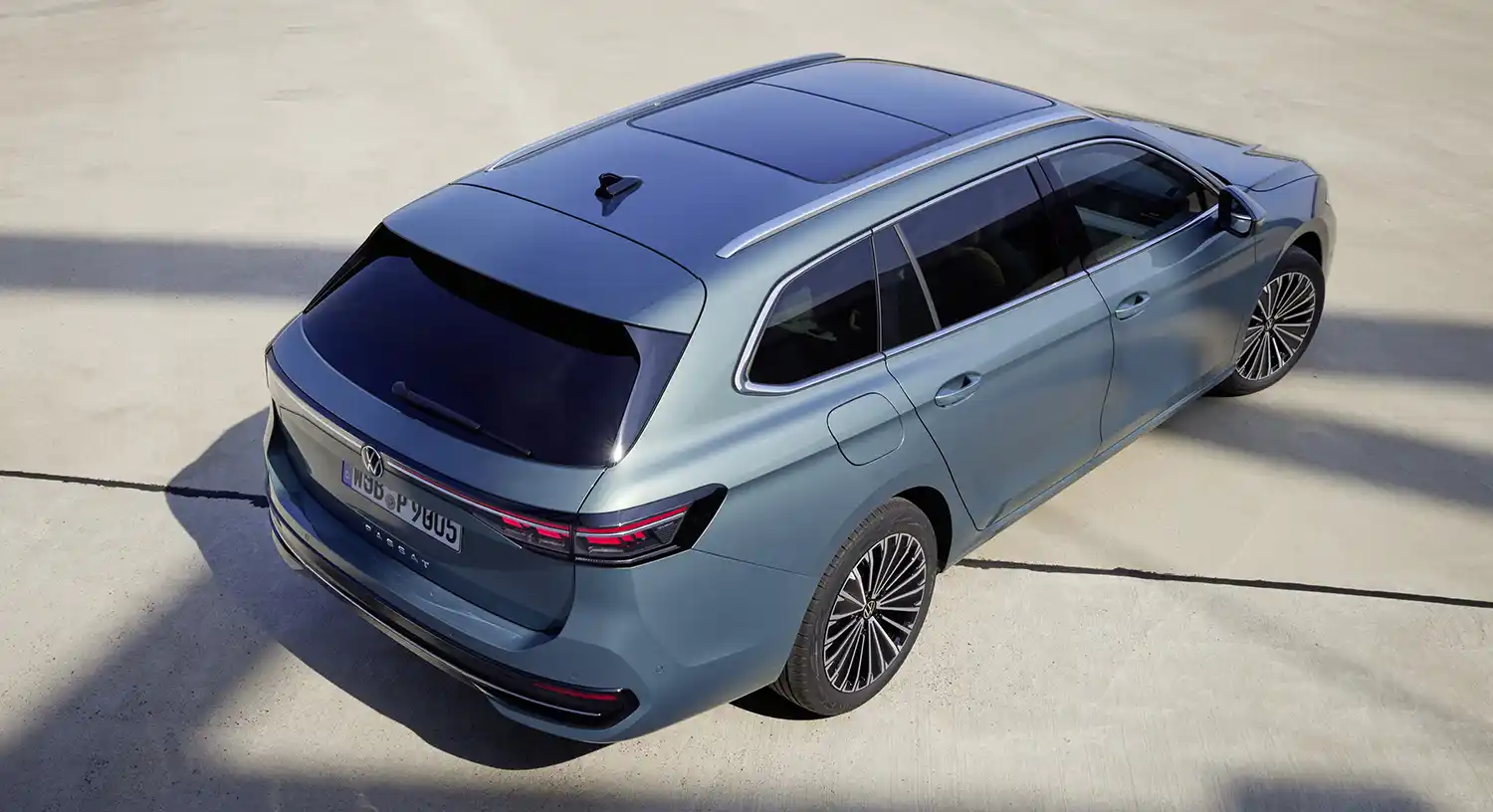 Volkswagen has carried the design of the tradition-rich Passat series into the modern era with the debut of the ninth generation. Compared to the predecessor, the surfaces are more sculptural, the lines more dynamic, and the dimensions larger. This is characterised by a wheelbase that is now 50 mm longer (2,841 mm) and thus significantly changes the proportions. The overall length of 4,917 mm corresponds to an additional 144 mm. The width has increased moderately by 20 mm to 1,852 mm. At 1,506 mm, the (with aerial) has remained similar to the predecessor. The longer length with practically unchanged results in more dynamic proportions.