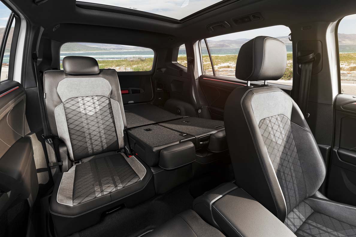 After the major visual and technological update of the Tiguan, the Tiguan Allspace is now next in line – with a sharper look, digital cockpit, new technologies, new equipment matrix and comprehensive connectivity. Its virtues as a spacious SUV remain unchanged: with a five-seat configuration, it offers a luggage compartment volume of 760 to 1,920 litres, with the seven-seater offering 700 to 1,755 litres. The optional seats in the third row can be folded like the rear bench seat and backrest in the second row.