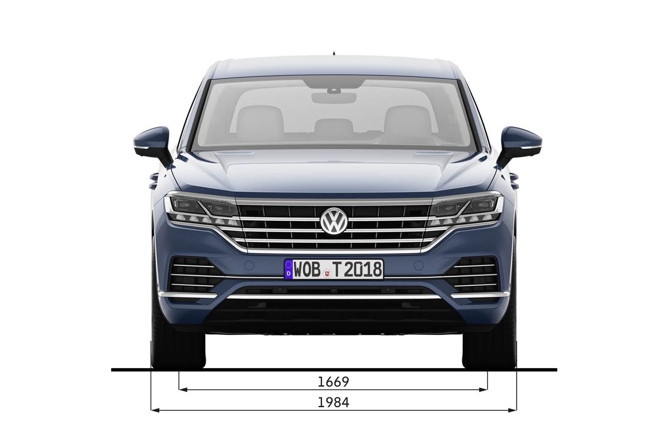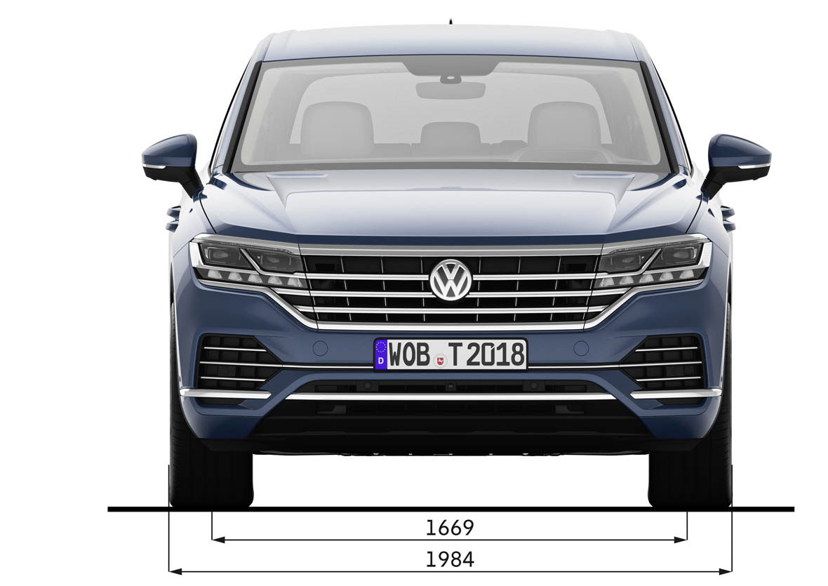 Technically, the new Touareg is based on the Group’s modular longitudinal matrix (MLB); it covers models with longitudinally mounted engines and gearboxes starting with the upper mid-size class. In contrast to the previous model, the third generation is moderately wider and longer, but a little lower. The new dimensions: 4,878 mm long (+77 mm), 1,984 mm wide (+44 mm) and 1,702 mm high (- 7 mm). The gains in length and width – in conjunction with the slightly reduced height – result in much more dynamic proportions.