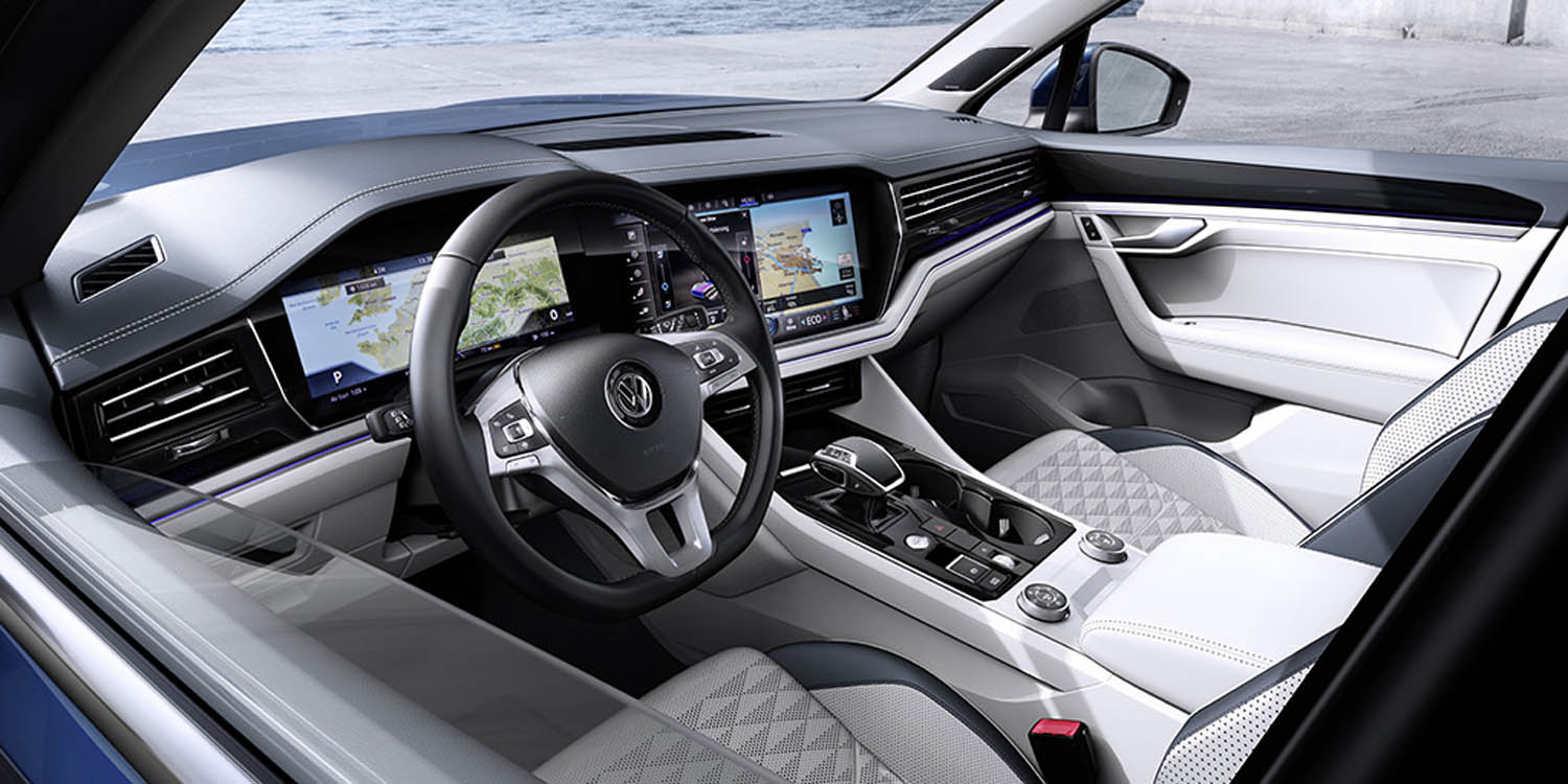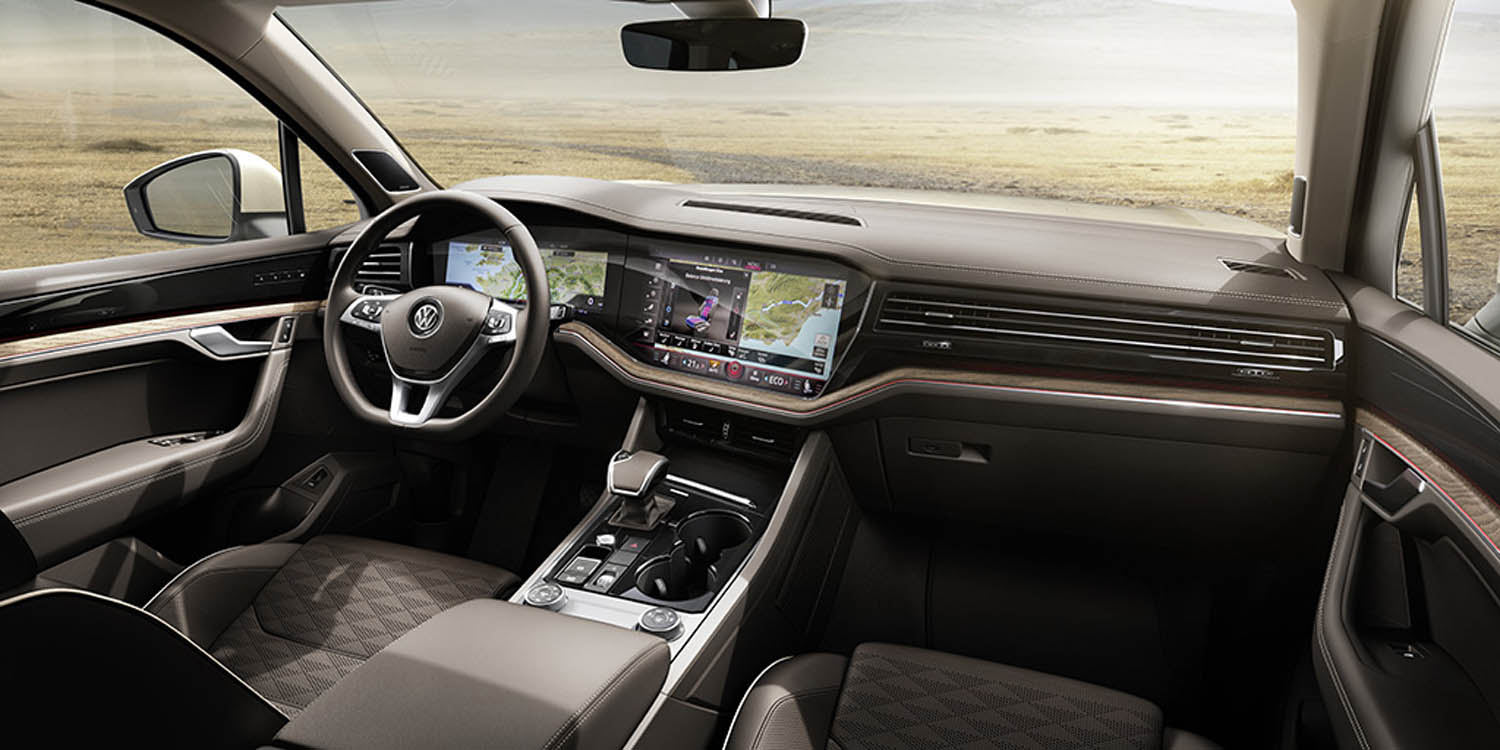Volkswagen is presenting the fully digitalised Innovision Cockpit for the first time in the new Touareg. Here the digital instruments (Digital Cockpit with 12-inch display) and the top Discover Premium infotainment system (with 15-inch display) merge to form a digital operating, information, communication and entertainment unit that hardly needs any conventional buttons or switches. Always-on, offering intuitive control and maximum personalisation – with the Innovision Cockpit, the Volkswagen Touareg provides the blueprint for tomorrow’s digital interior today.