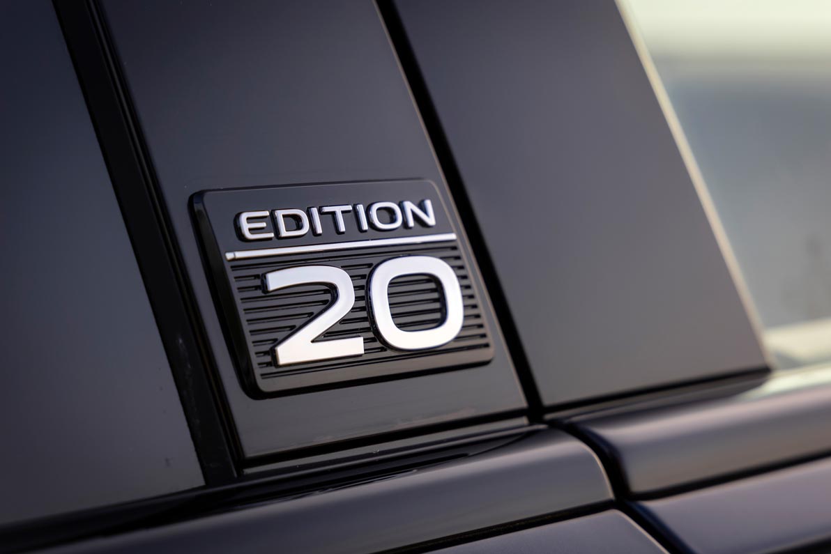 The distinguishing features of the new special-edition model include the completely new paintwork in Meloe Blue as well as the high-gloss polished 20-inch Bogota wheels, which are only available for the anniversary model. The expressive exterior design is rounded off by darkened side and rear windows, LED tail lights with cherry red tint, and an “EDITION 20” badge on the B-pillar. The wheel arches and diffuser additionally have a Black Glossy paint finish.