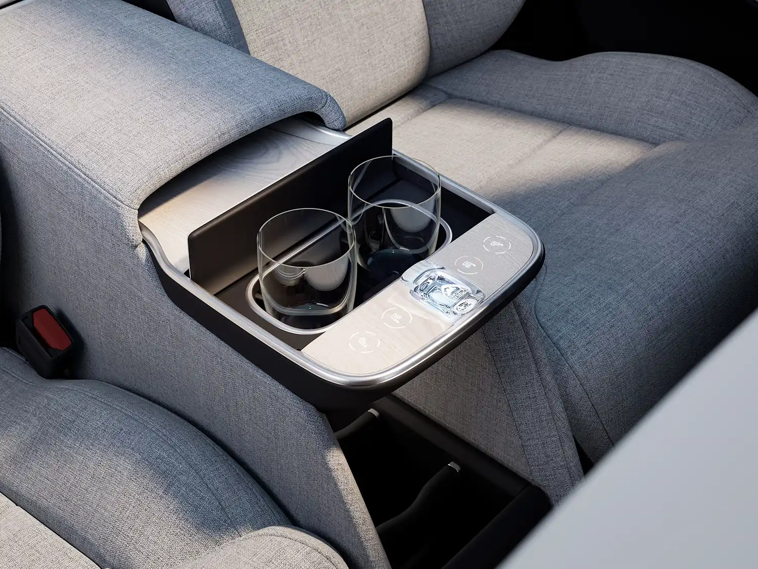 Once we’ve made sure that you’ll be seated in outstanding comfort in the second row, Volvo further amp up the convenience levels. In between the two seats we’ve incorporated a fridge where you can store a large bottle, allowing you to quench your thirst with an ice-cold beverage at any time.