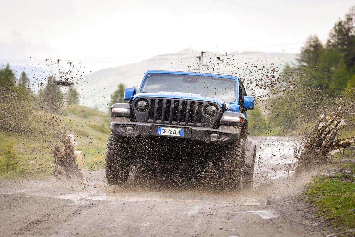 Plus, to accentuate the off-road disposition, both the special carry-all roof bars, for boxes, kayaks, canoes and much more, and the towing hook, to mount the specific bike carrier designed for heavier electric models. On the other hand, if a Jeep Wrangler 4xe customer is looking for “Urban” features, the catalog includes black or chrome-plated valve caps with the Jeep logo, more than ten 32” wheel covers and chrome-plated details such as tubular side steps and door sill guards. Never mind the specific 17” wheel rims that confer on the new Wrangler 4xe even more elegance and sportiness.