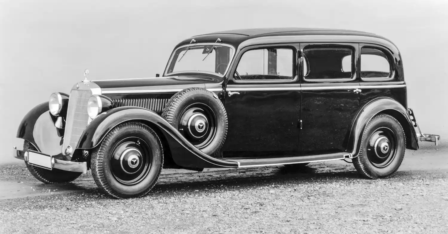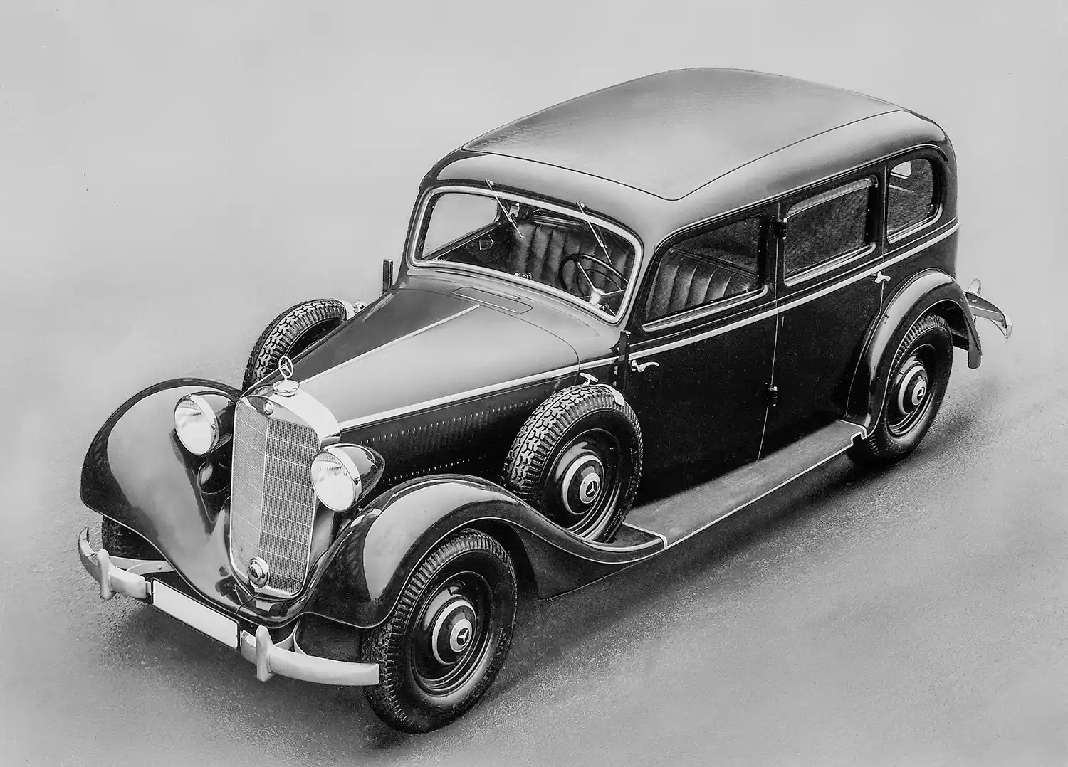 The high-and-long principle: The body of this 1937 ambulance was built by Lueg in Bochum according to a patented system. It makes maximum use of and length, and is designed specifically for transporting patients. The front end as far as the windscreen corresponds to the original Mercedes-Benz 320. Behind the driver’s cab is the compartment for patients and attendants. It is heated. Access is provided by the double rear door and a side door behind the co-driver. This configuration proved its worth: later in the brand’s history, comparable ambulances of the “high-long” type were often built on the basis of chassis in the tradition of the Mercedes-Benz E-Class with a long wheelbase.