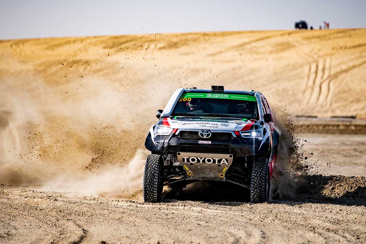 Pre-Baja favourite Yazeed Al-Rajhi finished third overall in his Toyota Hilux and T4 category leader Saleh Al-Saif and Khalid Al-Feraihi rounded off the top five. Dutchman Erik van Loon completed the stage in sixth place in the second of the Belgian-built Toyotas.